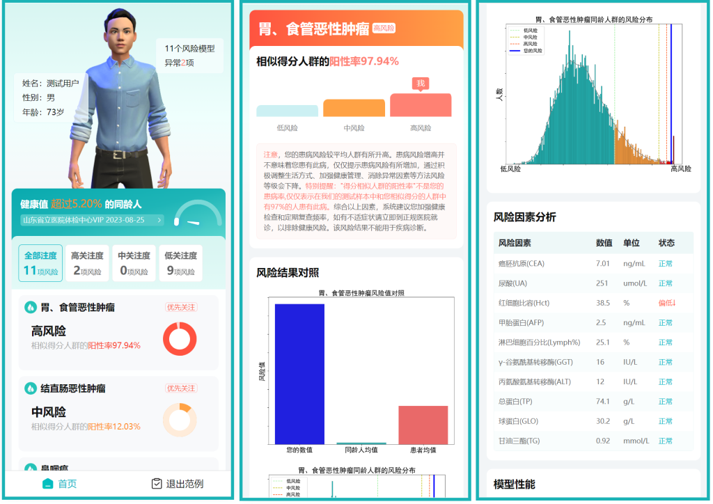 螺旋矩阵提供的“AI体检报告解读服务”采用最新的人工智能技术,能够快速扫描和分析用户的体检报告。参保用户只需上传近期体检报告,系统就能对体检数据进行综合计算,分析冠心病和16种常见肿瘤的患病风险。这项服务为“齐鲁保”参保用户提供了一次“AI二次体检”,尽早发现潜在的疾病隐患。